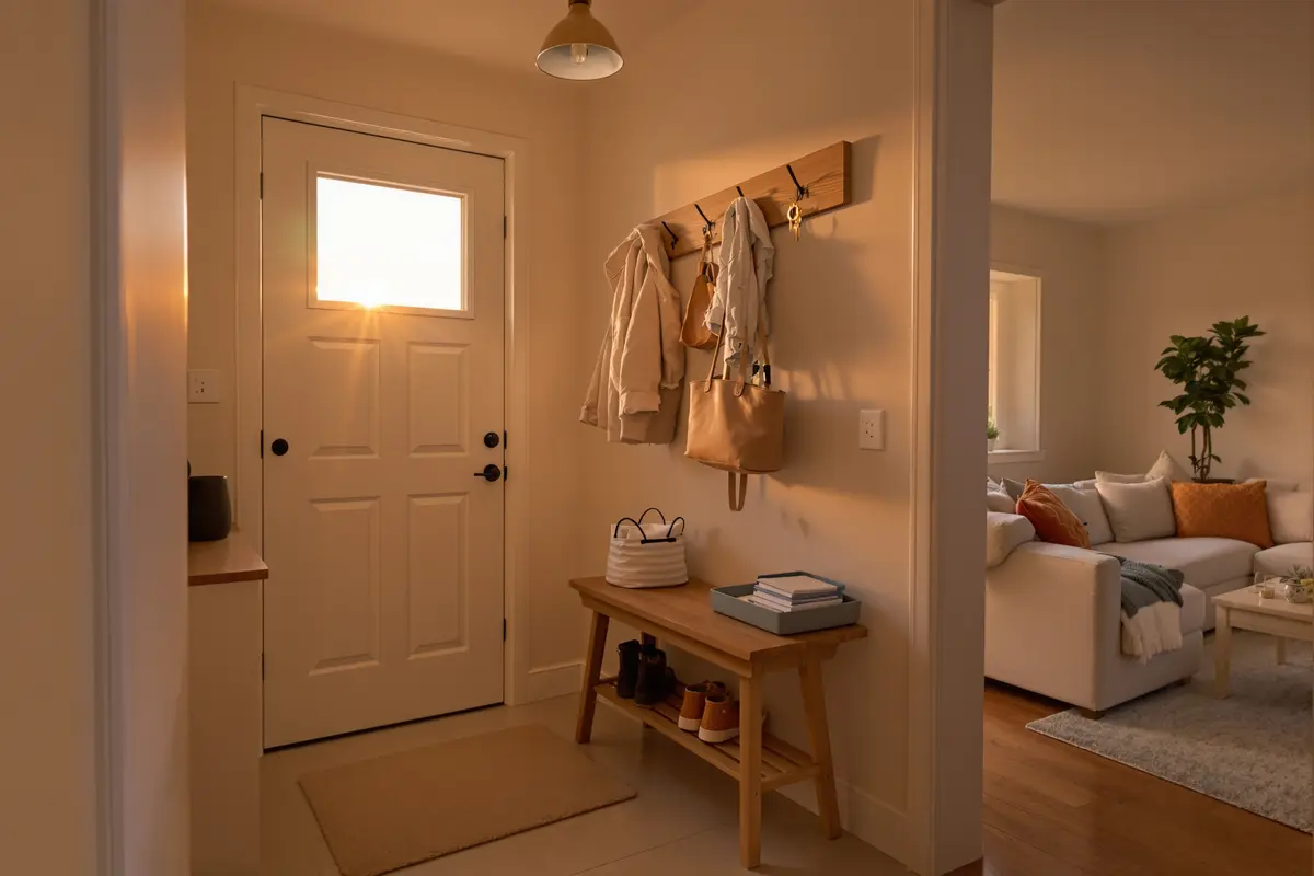 Juist dan. In een klein huis zie je elk object. Een goede landingszone voorkomt chaos.